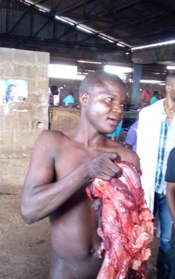 On Saturday 12th of November, 2016, around morning time, precisely at 8:30am, a period at which all the meat sellers have already set out their product for sale, a young man holding a sack-bag walked in majestically towards were some of the meats have been packed, and began to pack the bunch of meat without the consent of the sellers.